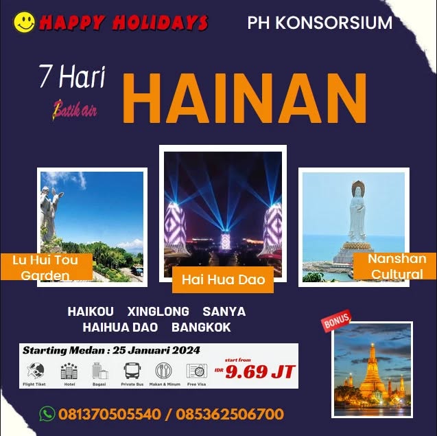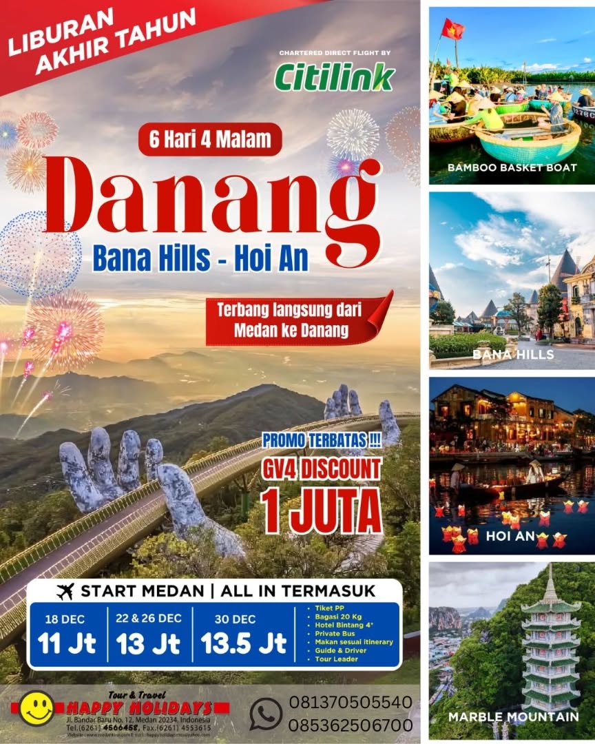 Jl. Bandar Baru No.12, Medan, Tel. 4566458, happyholidaysmes@yahoo.com